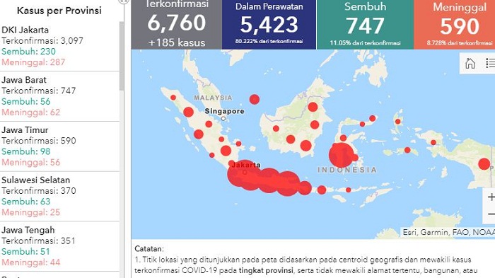 • BREAKING NEWS: Tambah 185, Jumlah Kasus Virus Corona di Indonesia Jadi 6.760 per 20 April 2020