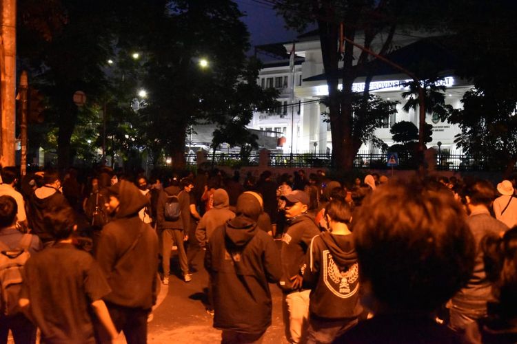 Massa awalnya berkumpul di depan Gedung DPRD Jawa Barat dan melakukan aksi unjuk rasa.