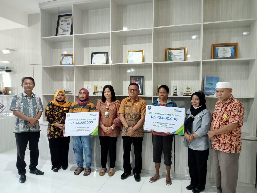 BPJS Keternagakerjaan bersama Pemerintah Daerah Kabupaten Pulau Morotai menyerahkan santunan sebesar Rp 42 juta kepada ahli waris