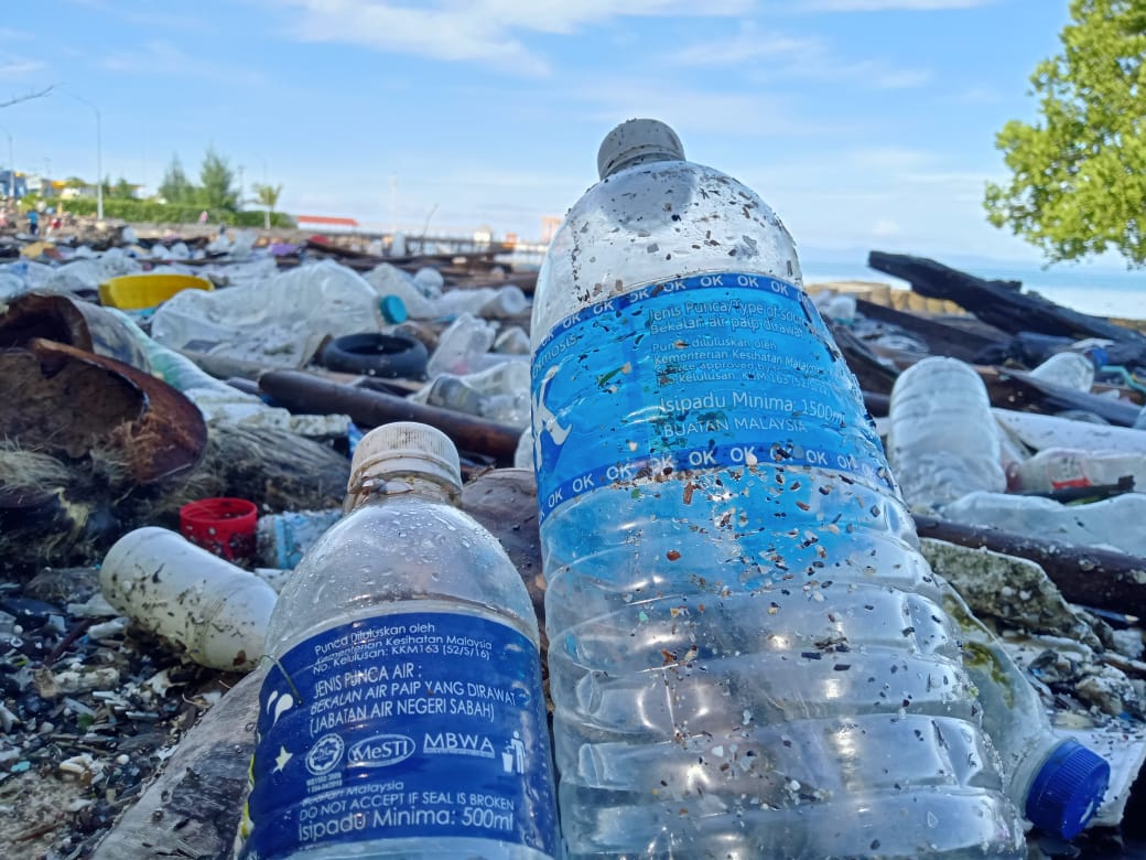 Bekas botol minuman plastik itu kebanyakan bertuliskan produksi dari Malaysia, Sabah, Brunei Darussalam dan lainnya.