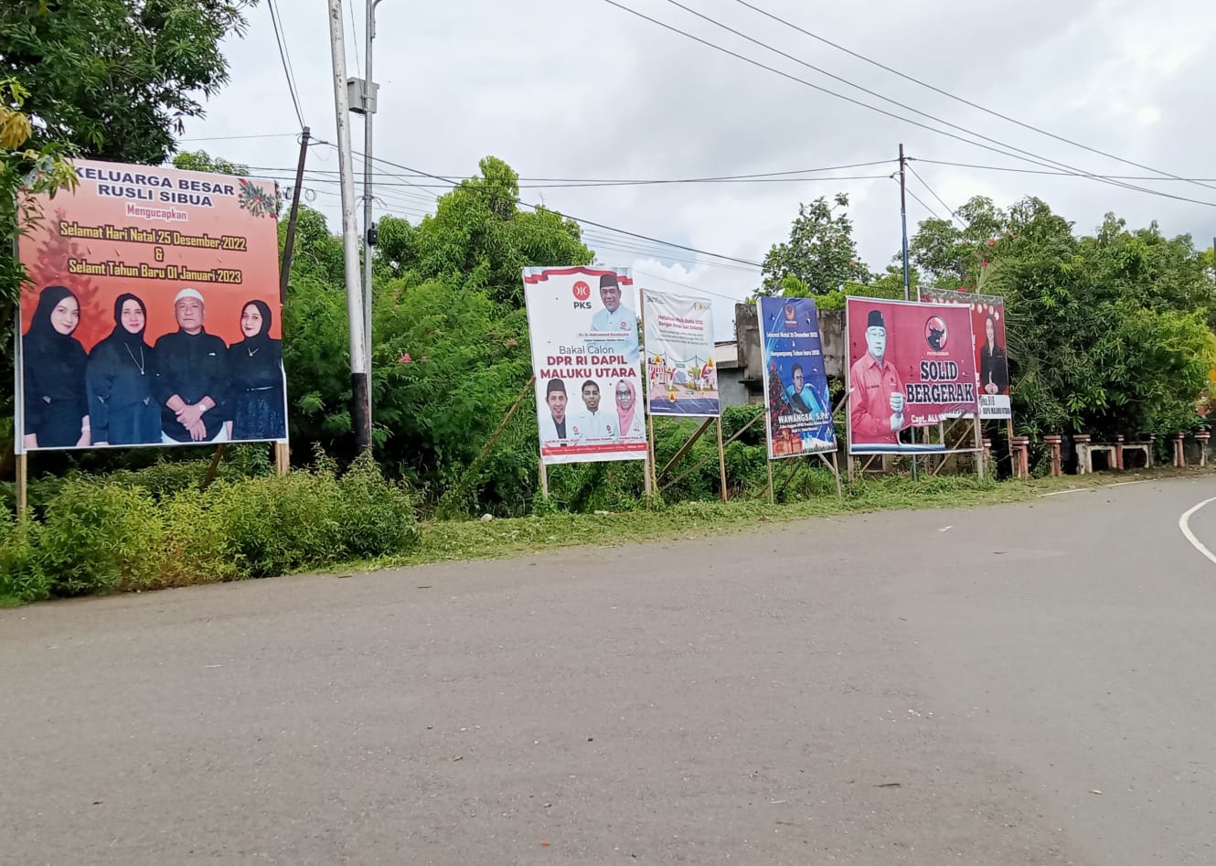 Baliho Calon DPD, DPRD Provinsi, DPR RI, dan Calon Gubernur Maluku Utara, mulai tersebar di sejumlah titik di Kabupaten Pulau Morotai.