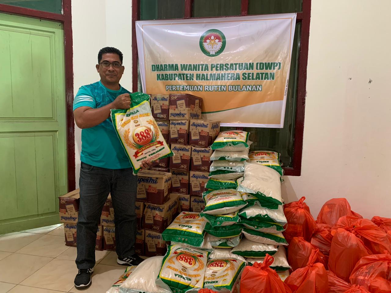 Pemkab Halmahera Selatan melalui Dinas Koperasi Industri UMKM dan Perdagangan (Diskoperindag) menyalurkan sembako sebanyak 328 paket