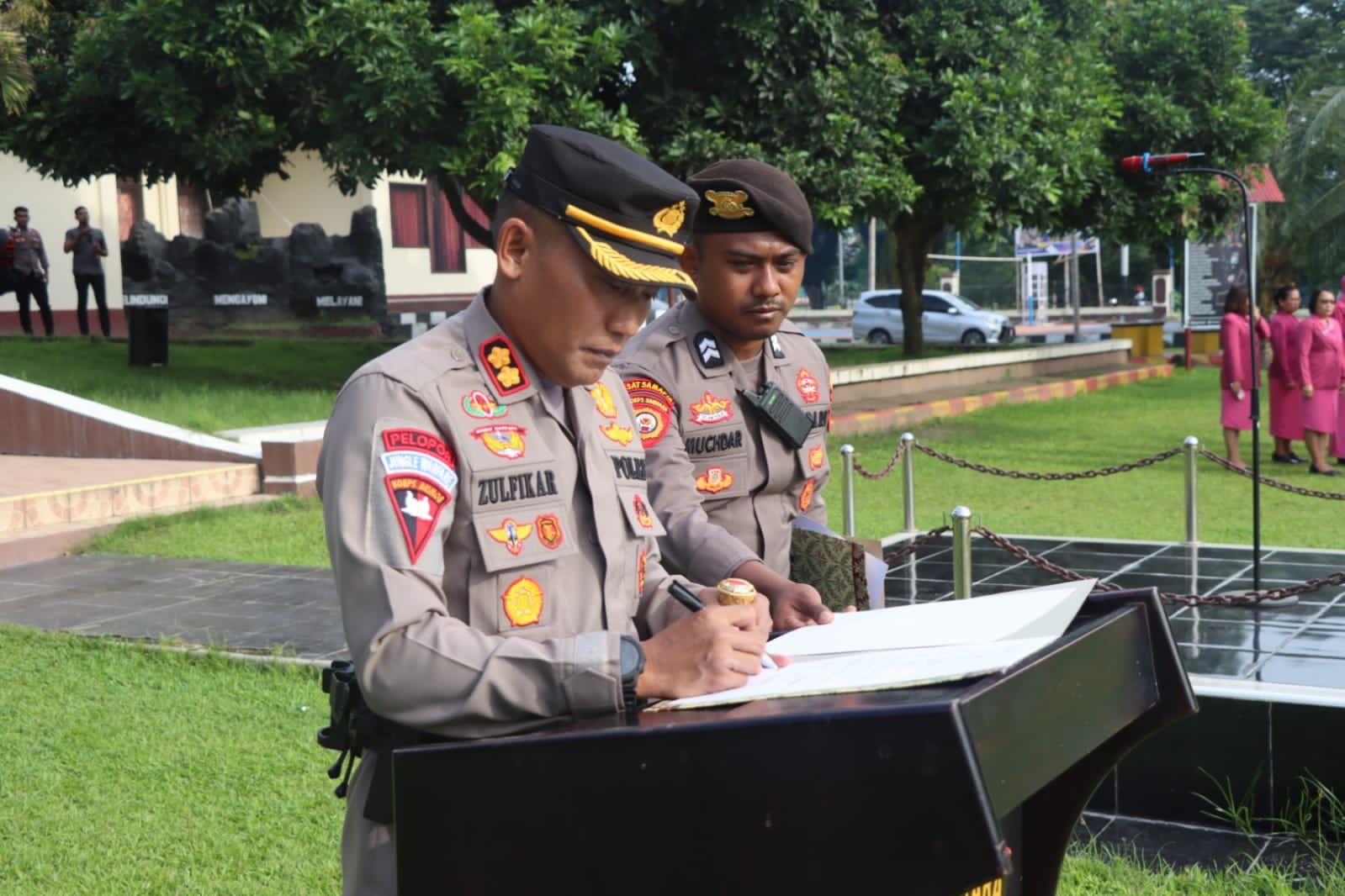 Kapolres Halmahera Utara, AKBP Moh Zulfikar Iskandar memimpin upacara serah terima jabatan.