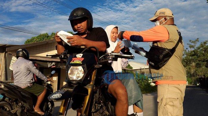 Karenanya, BPBD Halmahera Barat melakukan pembagian masker kepada warga.