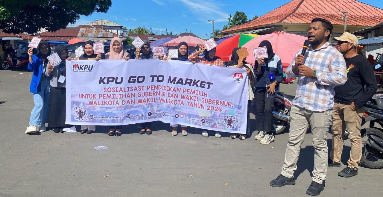 Dan Kamis (15/8/2024) ini, KPU Kota Tidore melakukanhal serupa di Pasar RUM, Tidore Utara dengan tagline 'KPU Go to Market'.