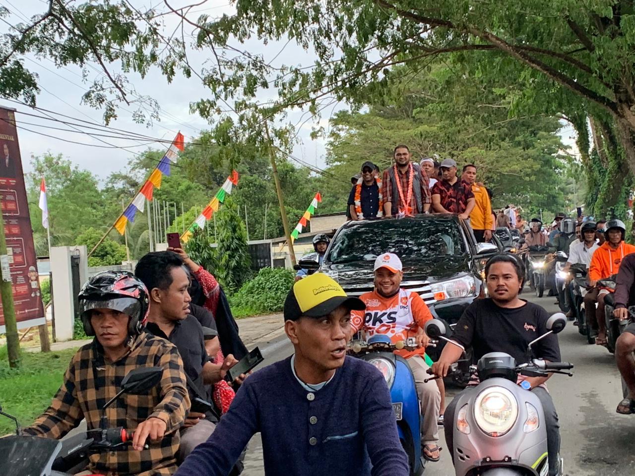 Bassam Kasuba disambut ribuan pendukung saat tiba di Halmahera Selatan usai menerima B1 KWK Partai NasDem, PKS, dan Hanura beberapa waktu lalu