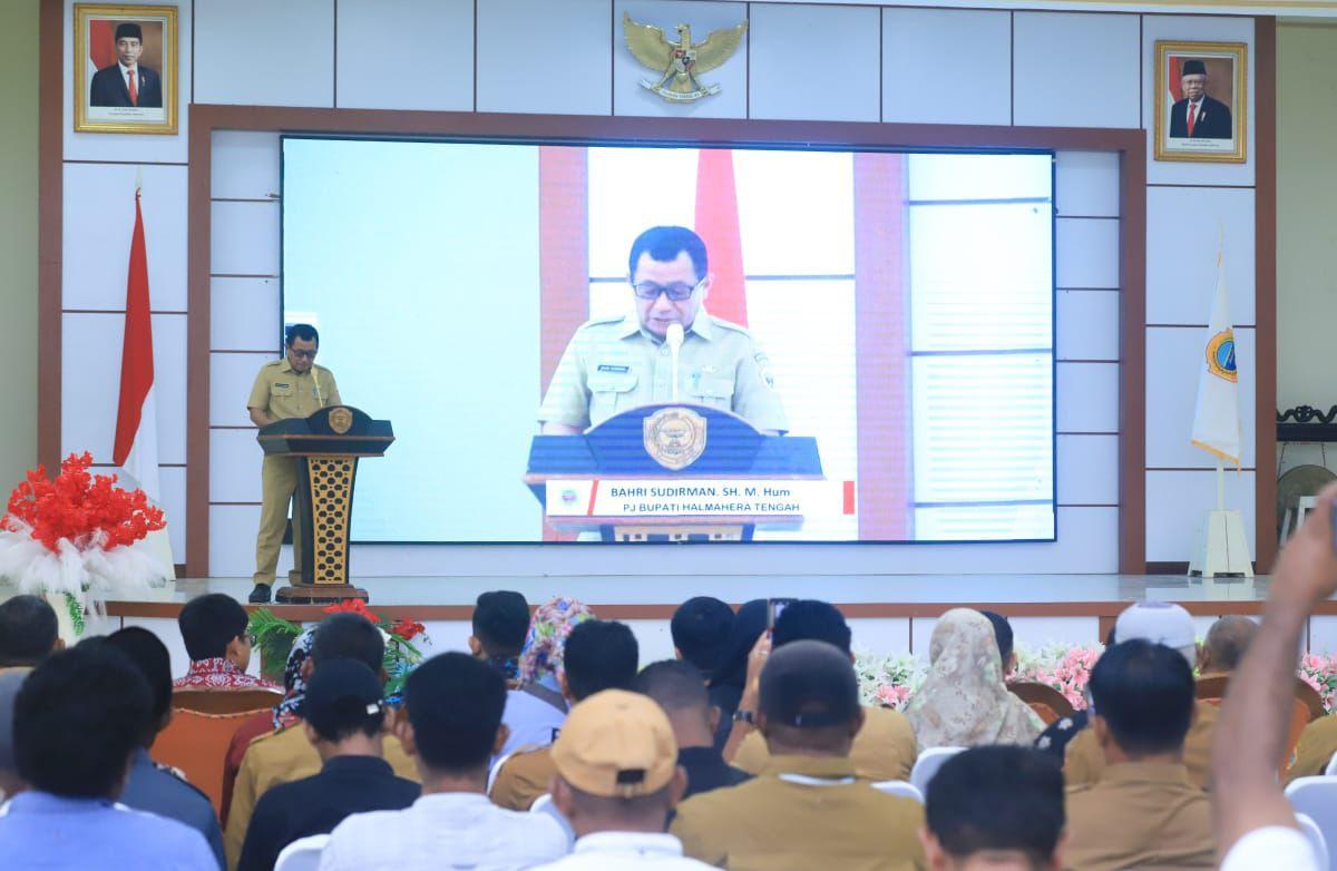 Bimtek penetapan dan pengesahan batas Desa berlangsung di aula kantor bupati Halmahera Tengah dan dibuka oleh pj. Bupati Bahri Sudirman, Senin (14/10/2024).