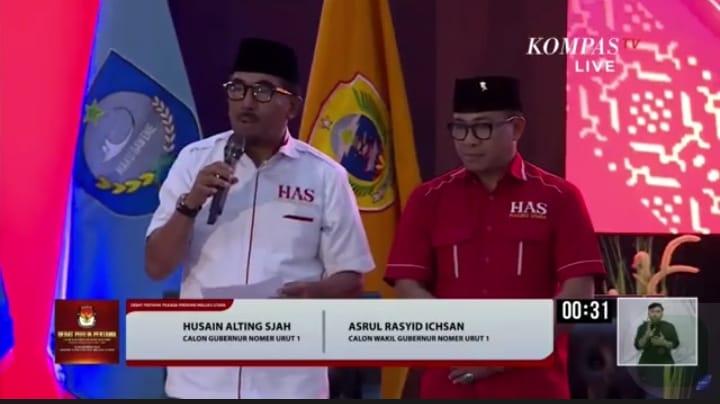 Hal itu disampaikan Husain Sjah pada Debat Publik Pertama yang berlangsung di Kantor DPRD Maluku Utara, Selasa (12/11/2024).