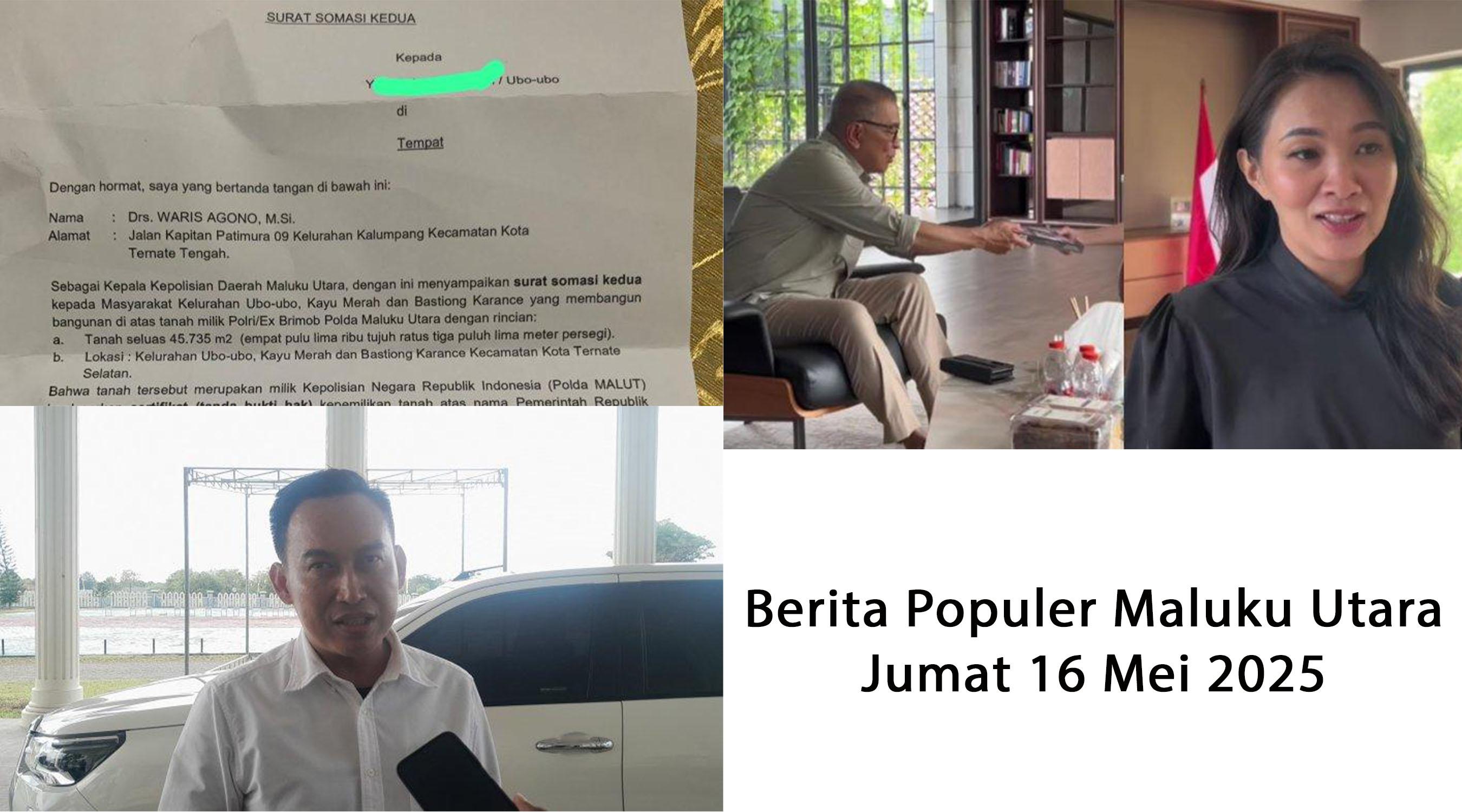 TRIBUNTERNATE.COM, MALUKU UTARA - Berikut 3 berita populer Maluku Utara yang banyak dibaca di website TribunTernate.com, Jumat (16/5/2025).