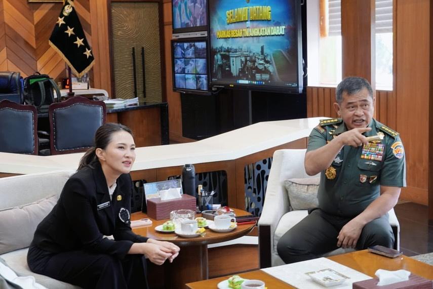 TRIBUNTERNATE.COM, JAKARTA - Gubernur Maluku Utara Sherly Laos temui Kepala Staf Angkatan Darat (KSAD) TNI Maruli Simanjuntak di Jakarta, Rabu (11/6/2025).