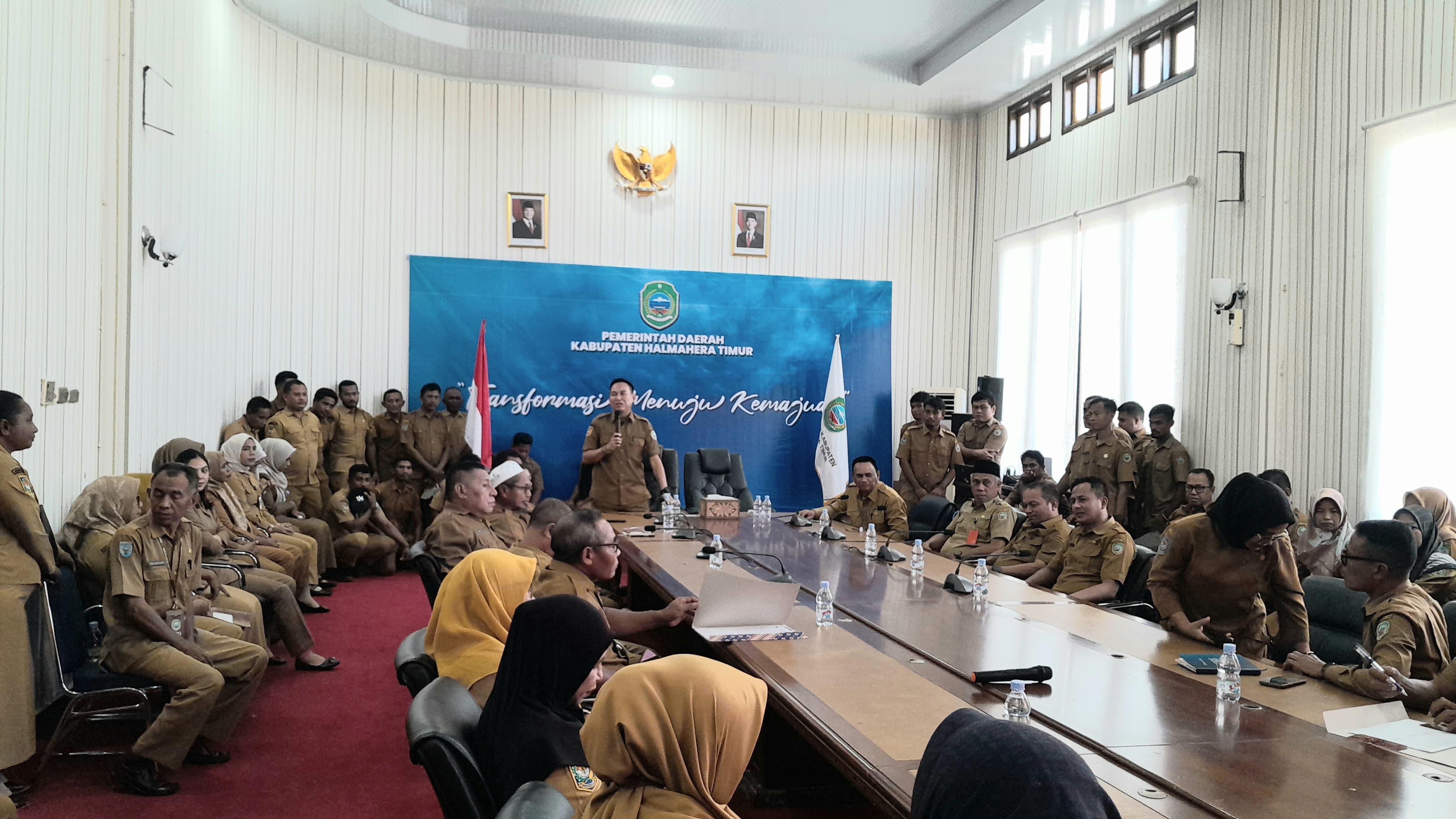 Kegiatan tersebut berlangsung di Ruang Esalon ll Pemkab Halmahera Timur dan dihadiri pimpinan OPD.