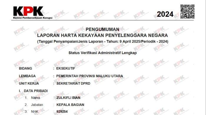 Segini harta kekayaan Plt Kepala Badan Kepegawaian Daerah (BKD) Maluku Utara, Zulkifli Bian